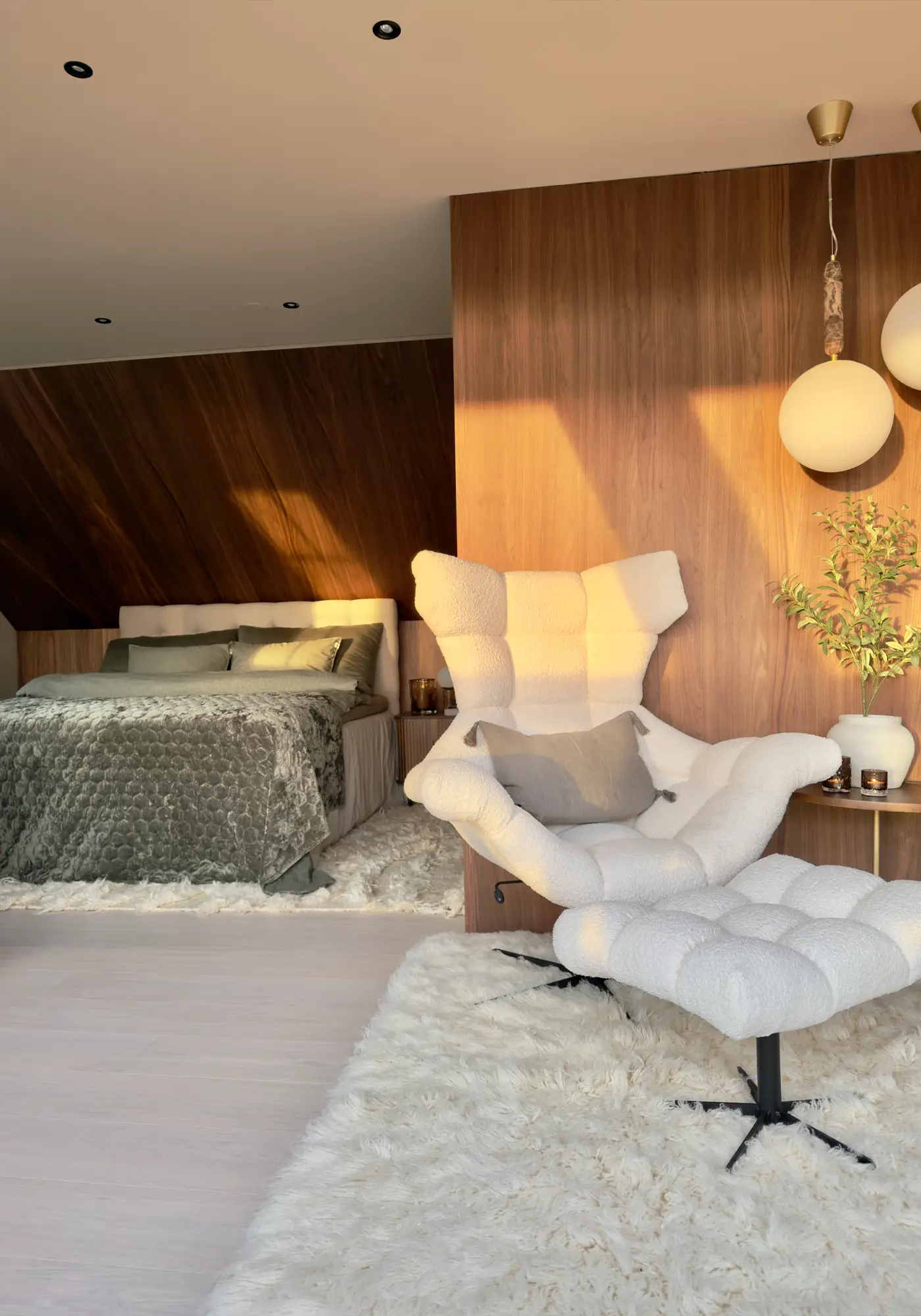Guter Schlaf ist wichtig für unsere Gesundheit. Mit Akustikpaneele von Wall Ribbon in Ihrem Schlafzimmer können Sie besser schlafen, denn durch die schallabsorbierenden Eigenschaften fühlt sich das Schlafzimmer viel ruhiger an. Die einzigartige Konstruktion, bei der Lamellen auf einer darunter liegenden Akustikdecke platziert werden, bedeutet, dass die gerippten Wandwände im Aussehen variiert werden können, um so allen Innenstilen gerecht zu werden.